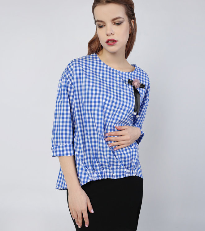 Блуза ONE LOVE с украшением в синюю клетку