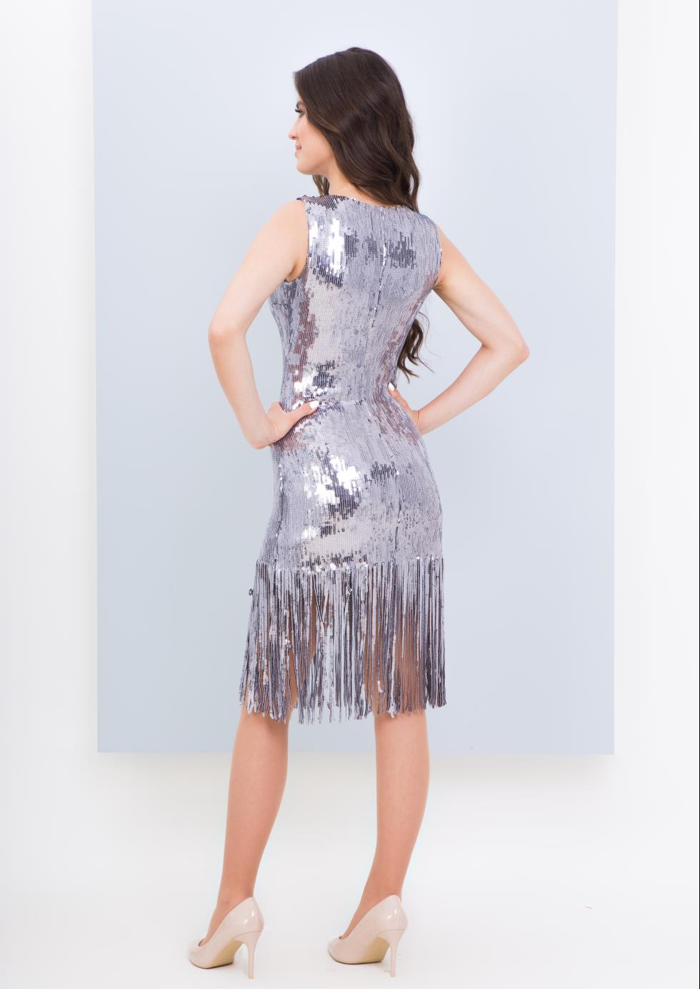 Короткое платье с блестящей бахромой серебряного цвета от Anetty